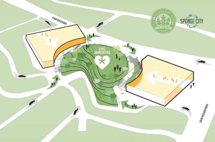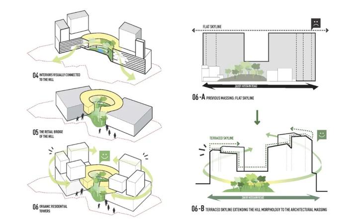 该项目位于孟加拉国吉大港市的一个极佳地段,业主想要开发一个大体量的城市综合体项目,以凸显其所在山坡的独特位置并弘扬邻近街区的精神。