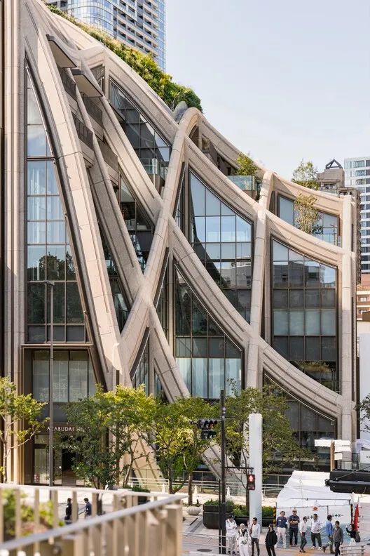 麻布台之丘(Azabudai Hills)是日本顶级城市景观开发商森大厦株式会社(Mori Building Co. Ltd.) 领导的三十年城市再生项目的桂冠之作。新的街区由住宅楼、商业空间、一所学校、两座寺庙、美术馆、办公室和餐厅组成,共同坐落于 2.4 公顷的绿色公共景观内。Heatherwick Studio 担任了该公共空间和裙楼建筑的首席建筑师。