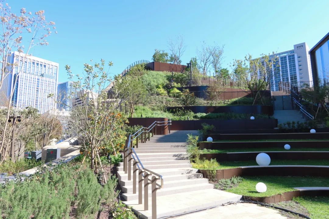 麻布台之丘整片建筑的全域绿化达2万4,000平方公尺,其中约有6,000平方公尺的中央广场充满绿意,步行其中犹如身处大自然内。中央广场更是开辟菜园果园,栽种蓝莓柠檬桃子等果树,共种植着约320种植物。而各种树木的种植也赋以巧思的规划,像是2月春季临近时,就能陆续看到不同品种的樱花依时序盛开,让花季能延展至5月。