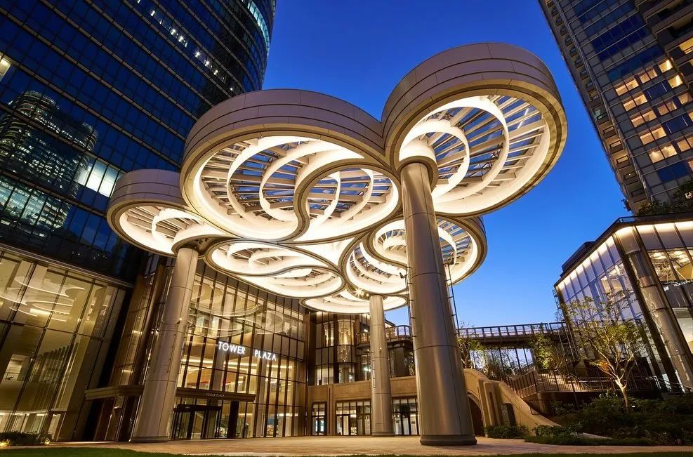 这种造型创造了一个新的地标,在东京的天际线上呈现出独特、奇特和喜庆的轮廓。大厦采用由 L'Observatoire International 设计的集成照明带,其独特的造型在夜间闪闪发光,光带从街道延伸到天空,环绕着顶部。