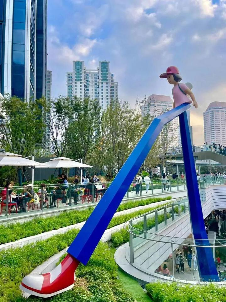 散落于商业各处的艺术装置如“迈上”和“大象亲子乐团”,则进一步塑造空间氛围,带来沉浸式的游逛体验感。