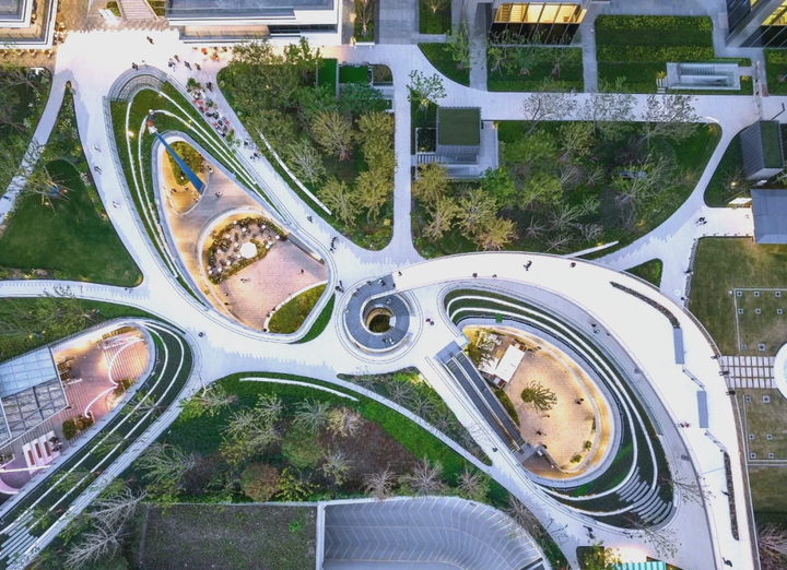 地上公园打造开放式绿化空间,成为周边办公人群与居民的休憩核心;