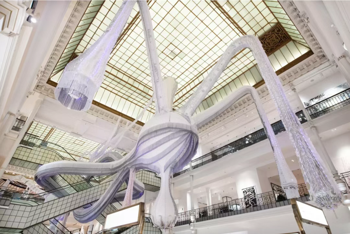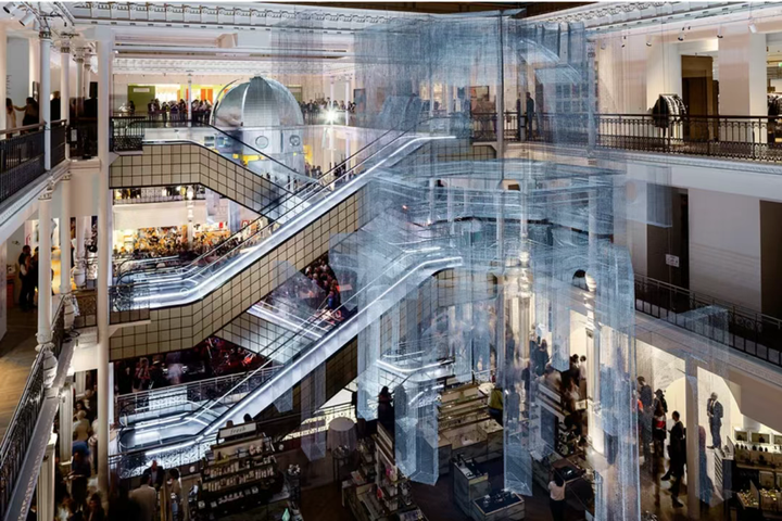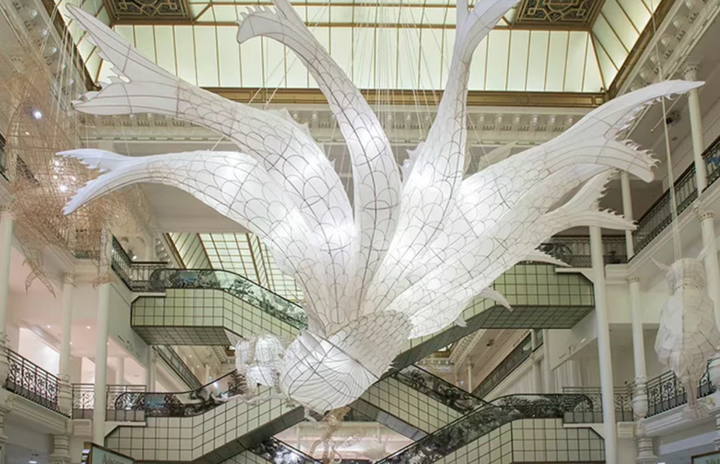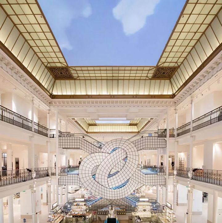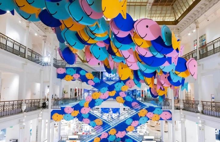 「乐蓬马歇」的历久弥新,不仅仅是它创新的商业模式、精致的商品和舒适的购物体验,还在于艺术的介入,艺术创造的不仅是空间,而是互动情境,从贩卖商品的传统角色跃升为精神体验的舞台,艺术装置的展示,深化了商业空间与消费者之间的情感纽带,使之成为值得回味与重访的目的地。