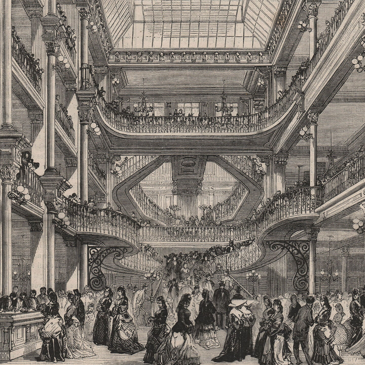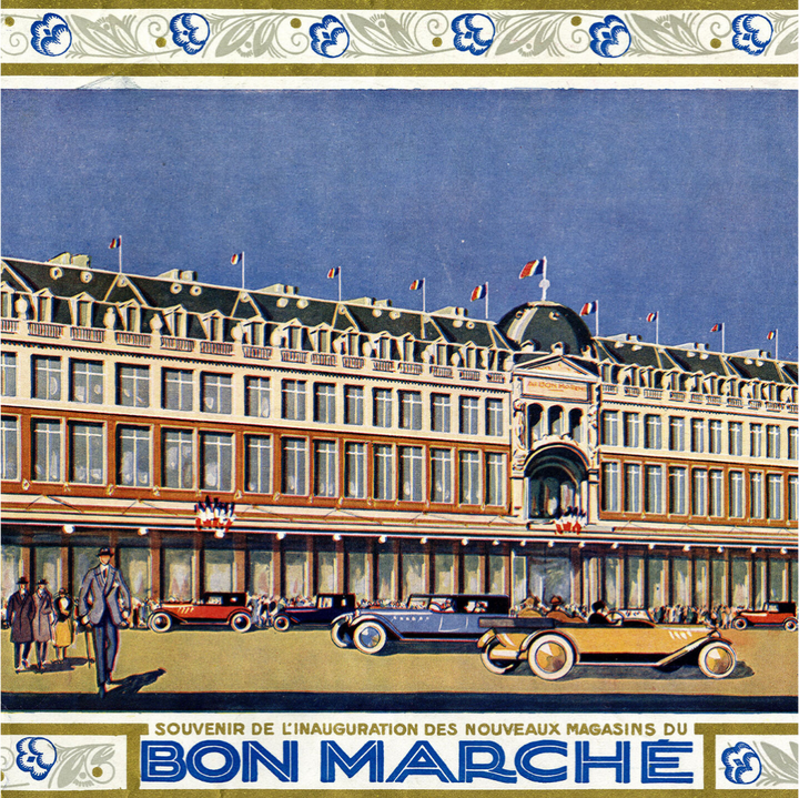 「乐蓬马歇」一家具有革命性意义的商场。19世纪的巴黎,零售业仍基于传统的经营模式,商品种类单一,商品的价格需要购买者询问,经常会引起讨价还价的现象,购买者也无法直接触摸到商品,直到1852年阿斯蒂德·布科(Aristide Boucicaut)和玛格丽特·盖林(Marguerite Gerin)夫妇通过将传统的店铺改造成在同一家商店内销售各种丰富商品的百货公司「乐蓬马歇」。