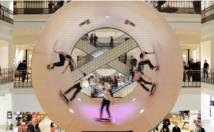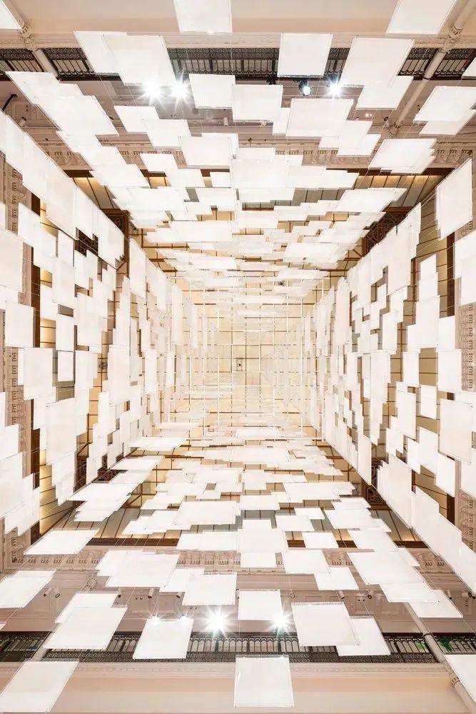 2024年1月,丹尼尔·布伦以百货玻璃屋顶上的方形窗格为灵感,完美展现了方块的造型,漫步商场,切身感受形状、动感、色彩与光影于此间充分发酵。
