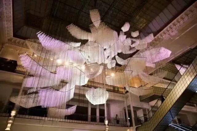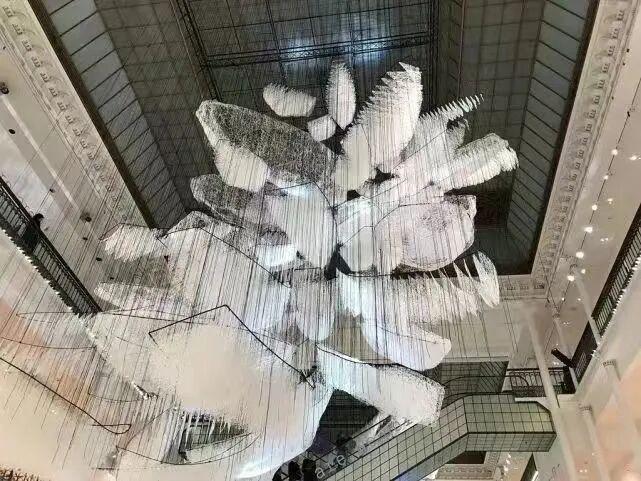 2017年,盐田千春创作的艺术装置由白色婚纱编制而成,一共有150艘小帆船悬架在百货核心,在地面上的展示由线丝惊涛骇浪盘绕成的屋子,游客能在其中穿梭。