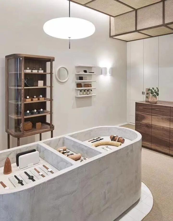 流水台又叫展示台,通常设置于店铺入口处,与橱窗有呼应的效果。当一家店铺没有设置橱窗时,流水台就会兼顾橱窗的功能,吸引顾客进店。