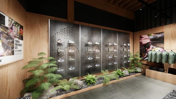 北美首家adidas TERREX零售门店以“将户外引入室内”为核心理念,通过创新的空间设计与材质语言,将雪域、徒步小径与雨林等自然元素转化为可感知的零售体验。门店效果图首度公开,展现了一个融合功能性与艺术性的沉浸式展厅,顾客踏入空间即仿若置身旷野,开启一场城市中的户外探索之旅。