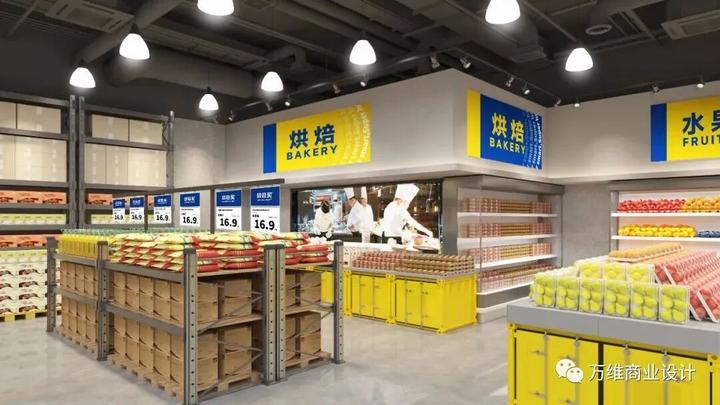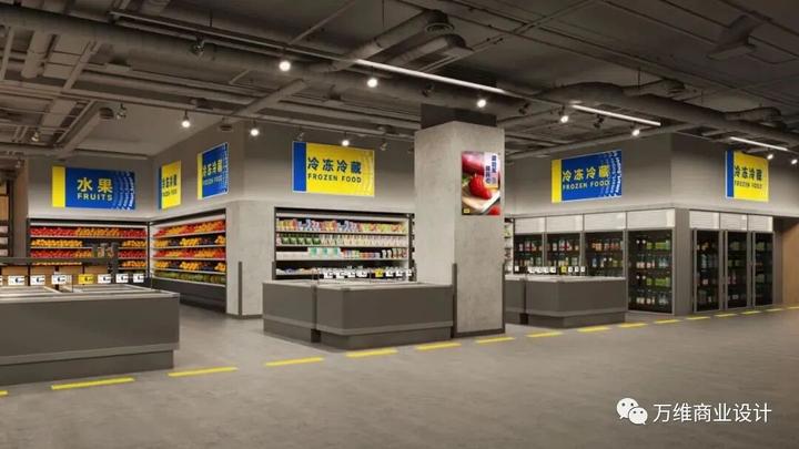 生鲜蔬果及冷藏作为引流,将顾客带到物业较深区域,从而盘活整个空间。