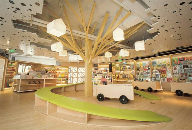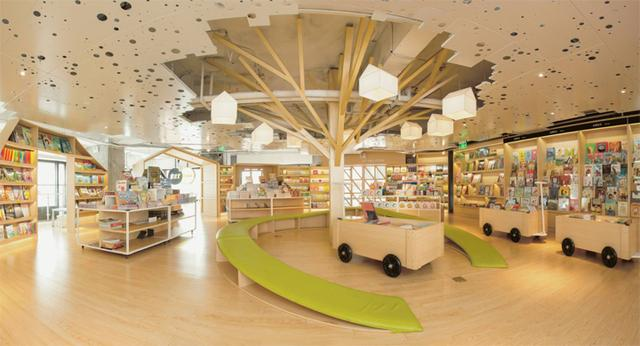 建筑空间共两层,分为生活体验区、阅读区、言宝乐园、咖啡吧、文创区。