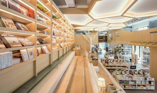 沿着生活体验区的梯级往上走来到了阅读区,这里的主题是阅读。原木色的简约设计营造了宁静的环境氛围,在这样的环境中,人与书之间可以产生更自由、更微妙的对话。