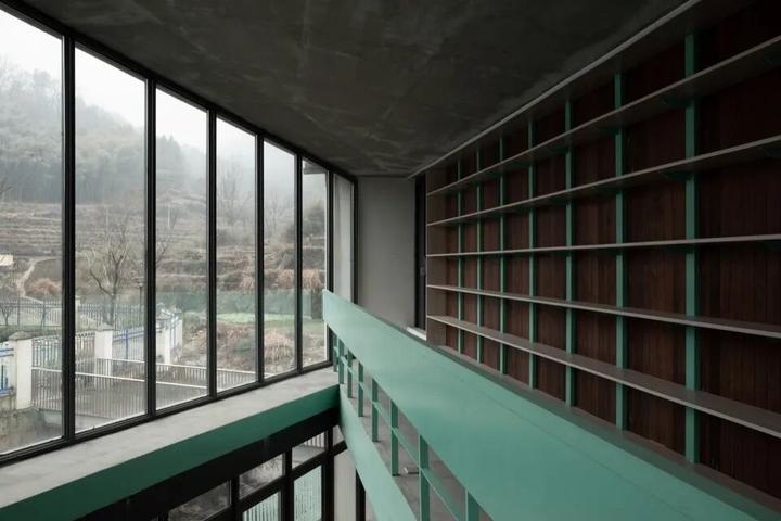 水泥厂建筑作为青年图书馆阅读功能的主要承载空间,其观景书墙由原有的两堵墙体改造而成,从底层延伸至顶层,让书籍贯穿建筑的每个角落,创造出开放的连续空间,成为村民持续的文化教育场所。