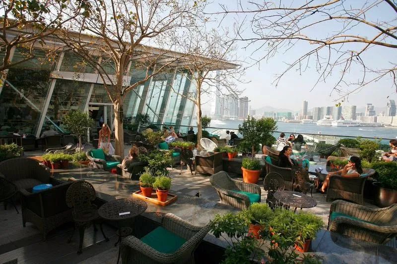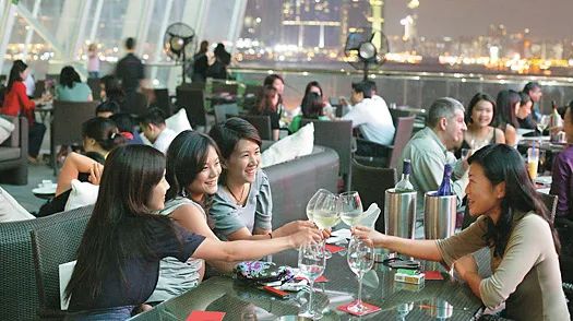 如香港 IFC 的天台酒吧,凭栏远眺,香港最美的维港景色尽收眼底,林立的高楼闪耀着金子般的光泽,在香港其他地方是很难欣赏到这样开阔、无遮挡的美丽景色——美景与美味相辅相成。