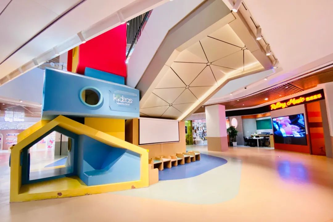晶耀前滩南区的Kids Mall,在不大的公区打造了一个巨型儿童积木房,与该楼宇的内容主题相呼应,此前也是商场亲子社群kideas的主要活动场地,让孩子们能在有沉浸感的空间中进行互动(如今由于活动规模增大,形式多样,因此另辟了新的活动场地)。
