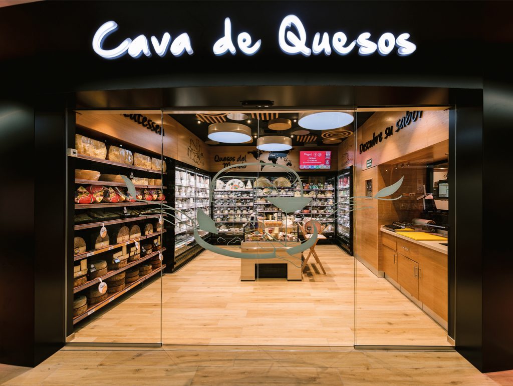 SPAR Mogán面积1600㎡,设计融合传统市场和现代超市两种概念,将奶酪,酒窖,啤酒窖打造成三个主题店中店,营造出独立的空间氛围,啤酒窖棚顶使用大型绿灯照明,设置吧台与生啤龙头,烘托出酒吧式的环境氛围。