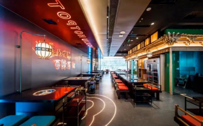 灯光设计不仅是为了满足店铺的基础照明,同时也是营造氛围和突出风格的重要一环。在国潮风店铺的灯饰中,也不乏有传统的木格栅元素,或是象征中华民族气节的梅兰竹菊等图案样式。为了符合当下的时代特点,当然也少不了利用线性灯、霓虹灯等来呈现具有科技感和时尚感的光效。