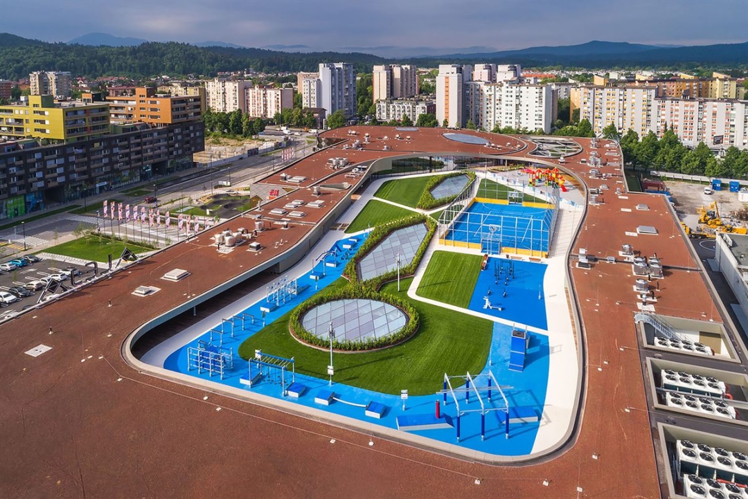 斯洛文尼亚首都卢布尔雅那东北部的 Šiška 区刚刚开业了一家 ALEJA 购物中心,面积3.2万方。在中欧小城,ALEJA 的体量可看做城市区域级商业,但它依然为满足周围社区而建立了一个屋顶体育场。
