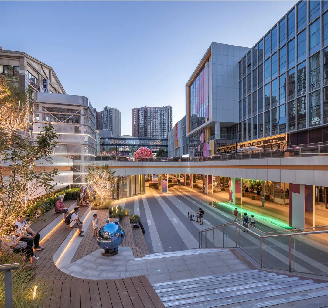 建筑空间改造上,引入微城市空间,打破大盒子原有的封闭体量,创造出丰富多样而有归属感的“城市客厅”。
