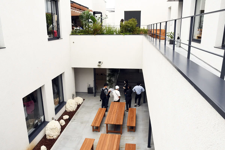 2021年6月接棒开幕的reload,也在商业场景上致力于传承下北泽的基因。虽具有建造集中式盒子购物中心的土地条件,但开发商选择将体量打散。整个商业设施由 24 栋低层分栋式建筑组成,由室外通道和内部庭院连接。24 栋大大小小的建筑中间有露台,有长桌长椅和植物景观,让人仿佛漫步在下北泽小巷里,随时拐弯随时走进一家店铺里。reload中的第一组团是用作出展览、展演的空间,第二组团之后则是各种特色店铺,包括人气咖啡店小川珈琲、素食烘焙坊等具有特色的餐饮店铺,还有精致的古着商店、瑜伽工作室等等业态穿插在开放性的商业空间中。